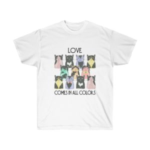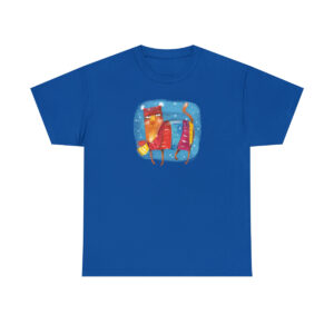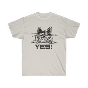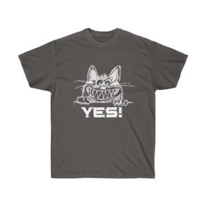 Cat themed shirts. Humorous and artistic. With words and images of cats.